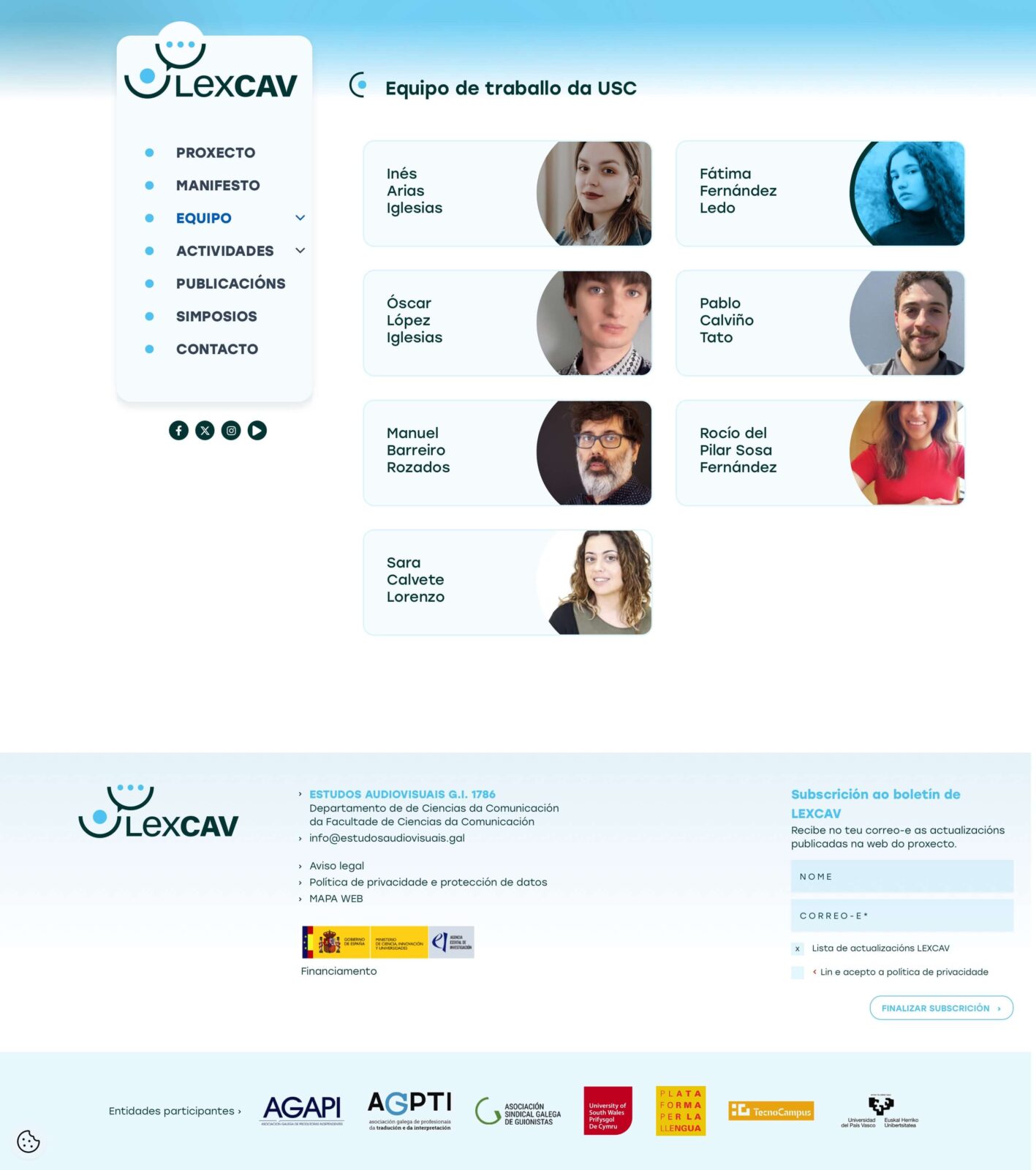 • Projeto com múltiplas entidades participantes — USC, UPV/EHU, Universitat Pompeu Fabra, University of South Wales, e associações profissionais do setor audiovisual galego — exigindo uma estrutura clara de equipas e atividades, escalável ao longo dos três anos de duração.