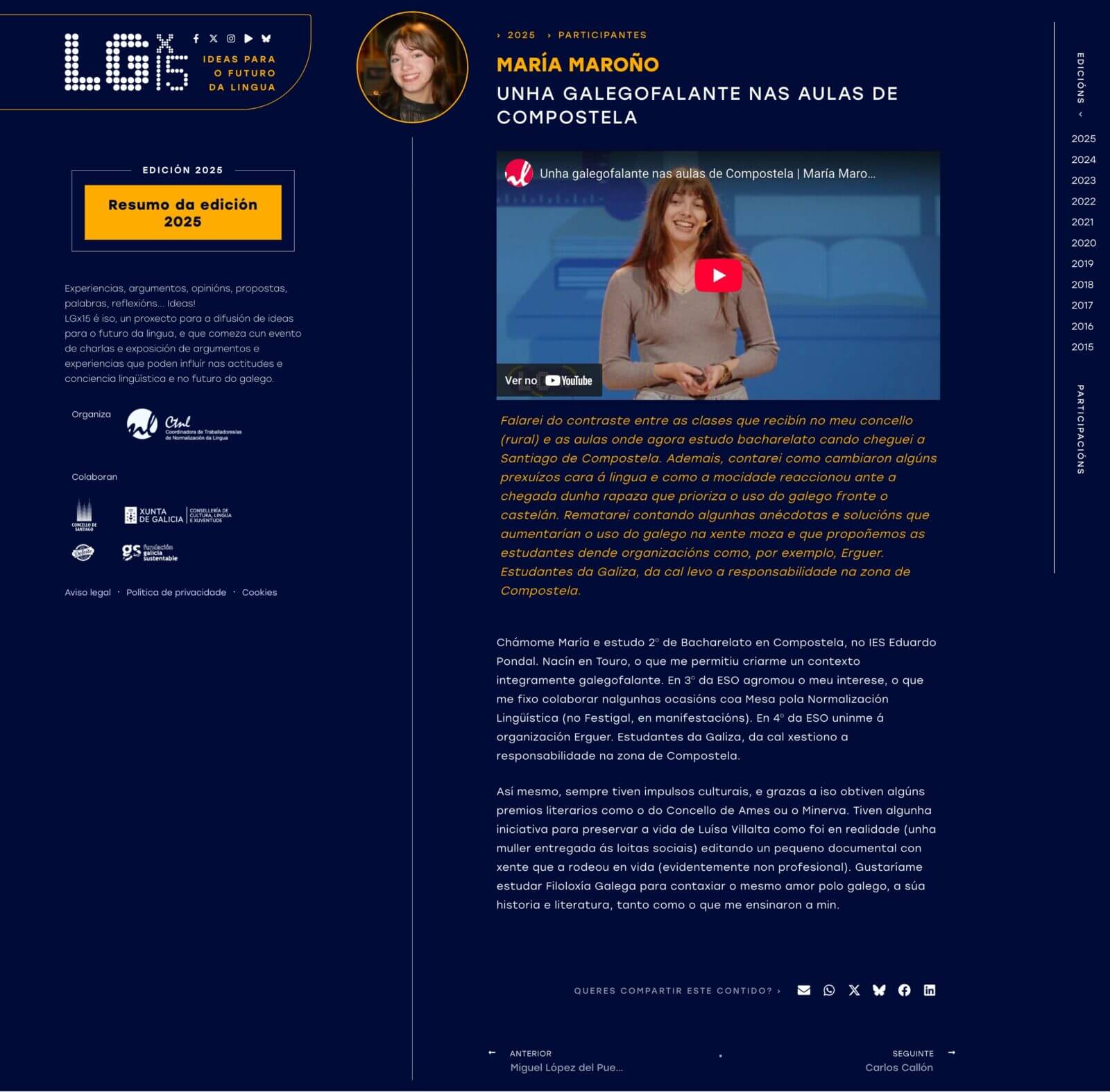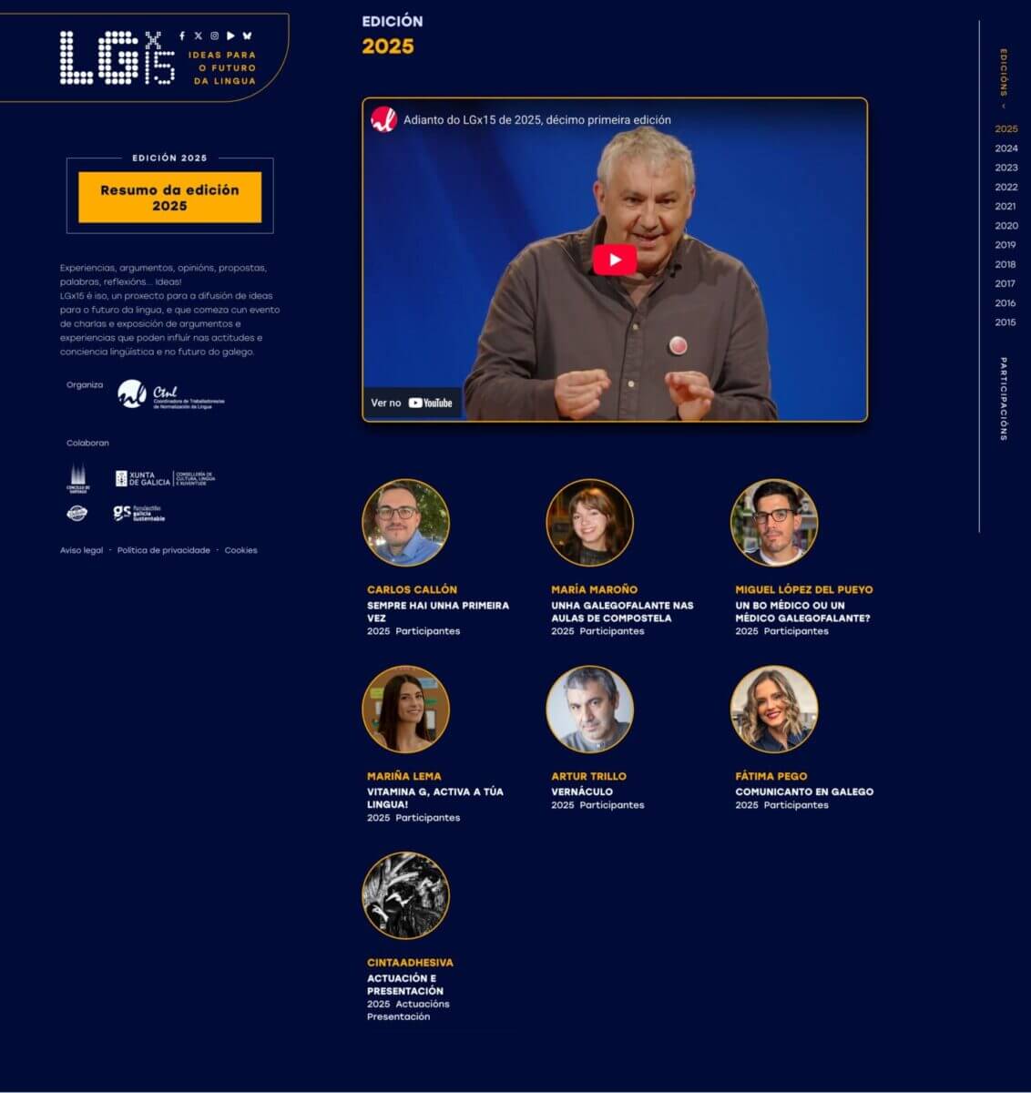 • LGx15 — Plataforma web do evento de difusão de ideias sobre o futuro da língua galega